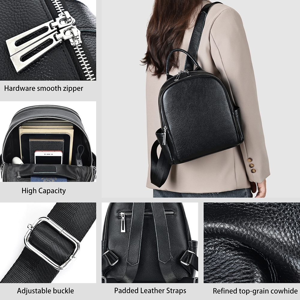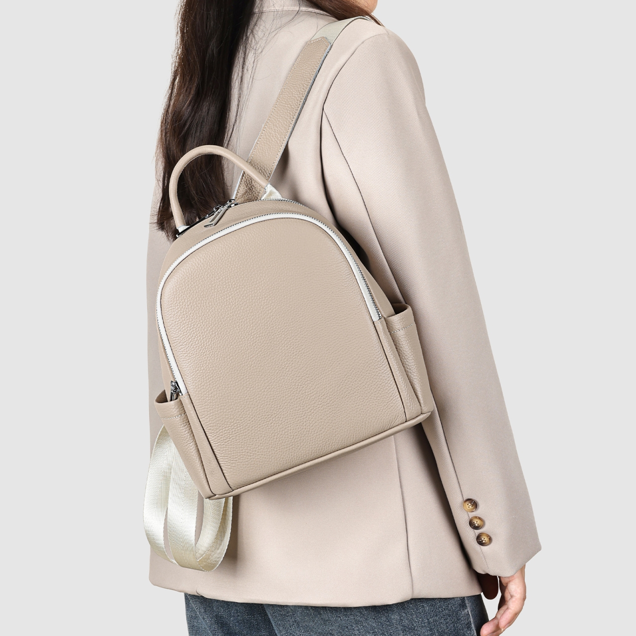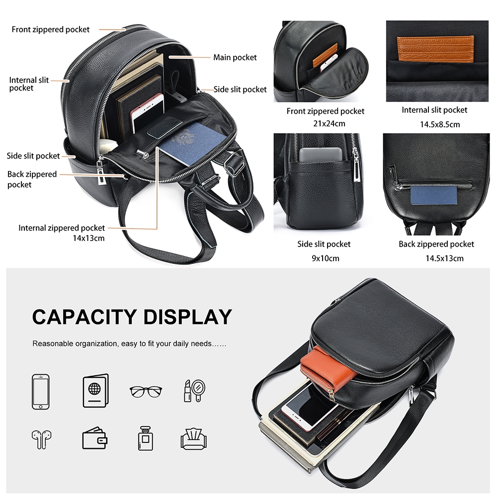 interior captusit; 1 compartiment principal; 1 buzunar interior cu fermoar; 1 buzunar exterior fata cu fermoar; 1 buzunar exterior spate cu fermoar; 2 buzunare laterale; bretele ajustabile; material: piele naturala; sistem inchidere: fermoar; dimensiuni: 24 x 13 x 26 cm; greutate: 0.59 kg; accesorii metalice de culoare argintie. Important: Nuanta produsului poate varia usor, datorita luminozitatii monitorului, datorita varietatilor instrumentelor de masura, pot exista usoare erori de cm!