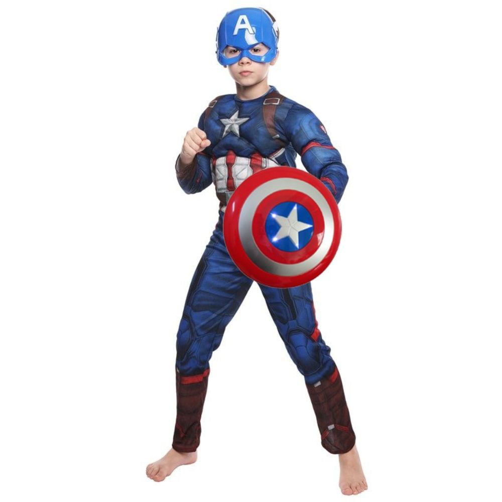 Copilul tau poate salva lumea cu acest costum pentru copii Captain America frumos detaliat! Costumul de luptator Avengers are muschi ce dau aspectul unei salopete de lupta reale.