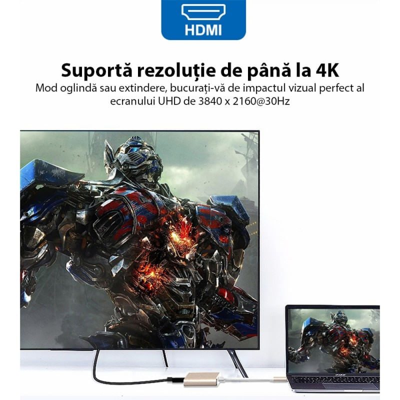 Adaptorul multifunctional 3 In 1 USB-C La HDMI Techstar® DJ3IN1 va permite sa va conectati pana la alte trei dispoziti in acelasi timp. Poate fi folosit cu telefoane precum Samsung Galaxy S8/S9/S10 si laptopuri precum ASUS Zenbook, HP Spectre, Macbook si Macbook Pro, Dell XPS etc. USB 3.0 Fast Ethernet este o solutie rentabila pentru conversia porturilor USB in porturi Ethernet 10/100M . Va permite sa aveti cu usurinta o conexiune de retea Gigabit la desktop-uri, notebook-uri, sisteme incorporate si sa utilizati porturi USB populare. Nu este nevoie sa cumparati interfete de retea gigabit scumpe si sloturi PCI sau CardBus de rezerva, doar utilizati porturile USB existente si va puteti imbunatati viteza conexiunii la retea.Specificatii: Materiale: aliaj de aluminiu, invelis PVC, cupru Interfata placata cu nichel, rezistenta la oxidare, durata lunga de viata USB 3.0 este un port USB nou Viteza de transmisie a datelor va fi de 5Gbps In comparatie cu USB3. 0, noua tehnologie USB este un sistem de codare a datelor mai eficient si ofera mai mult decat dublul volumului de date valide Transfer de date si semnal vocal. Compatibil complet cu USB 2.0 si USB 1.1 Conector de tip C, mufa libera Shielding: Pregatirea ecranului de inalta densitate Dimensiunea produsului: 128x53x16mm Greutatea produsului: 55gPachtul include:1 x adaptor 3 in 1.