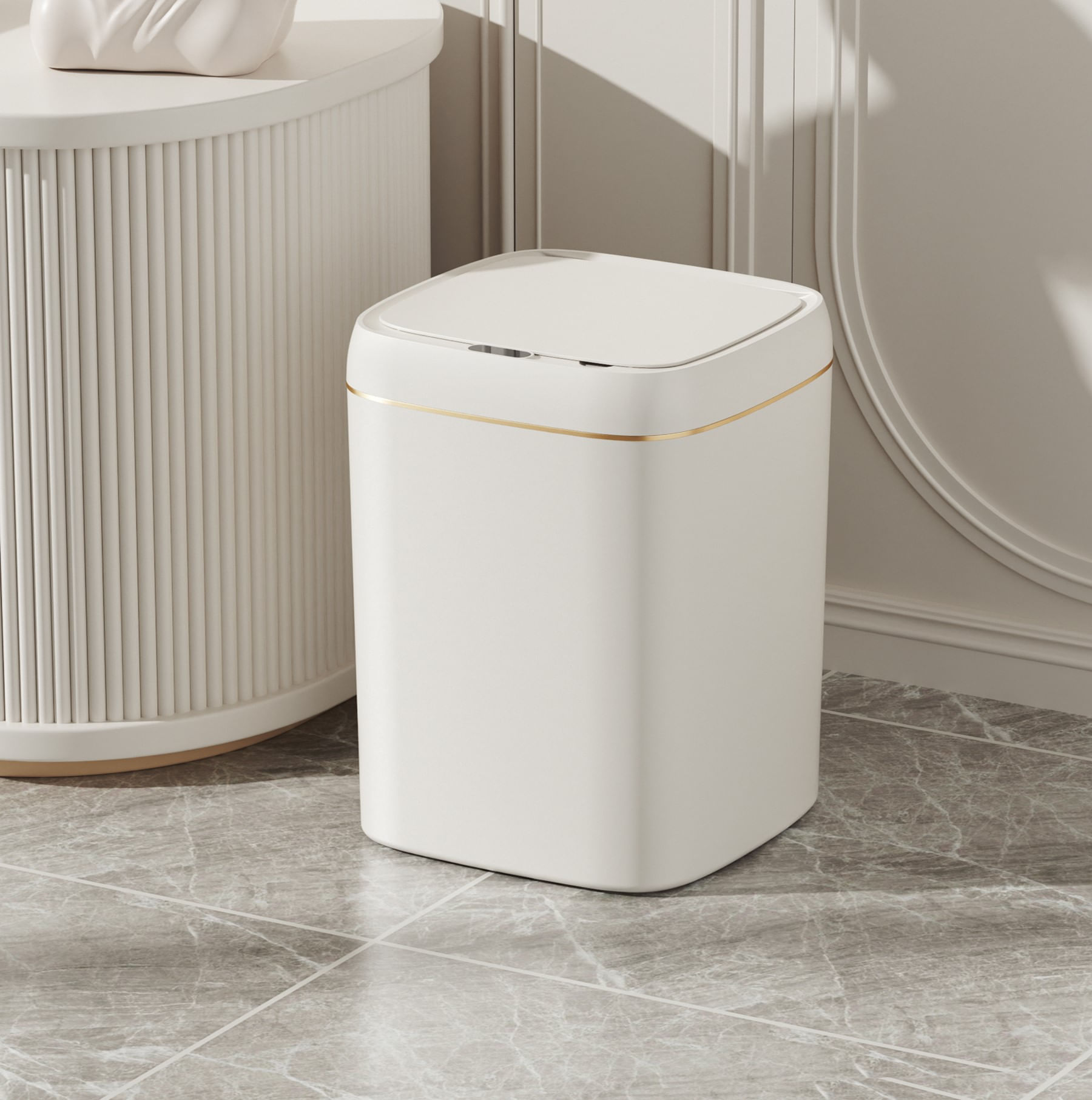 Cos de gunoi cu senzor SH-8617C, Polipropilena, Alb+Auriu, 13 L