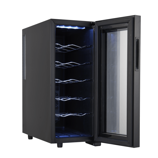 Descriere Frigider pentru vinuri Zilan ZLN4682 Negru 33L 50W iluminare interioara Pentru a aprecia in totalitateun vin bun trebuie sa ne amintim ca este recomandat sa fie servit la temperatura adecvata pentru a va satisface gustul cu cele mai bune caracteristici Datorita acestui fapt hotelurile restaurantele si cunoscatorii detin racitoare care tin temperatura si umiditatea adecvata Racitorul de vin poate fi utilizat atat in restaurante baruri cat si acasa Se dovedeste util intotdeauna cand se cere temperatura optima a vinului Acesta poate depozita pana la 12 sticle de vin si va permite sa reglati temperatura in functie de tipul de vin pe care doriti sa-l serviti Nu numai ca este functional si economic energetic dar are si un aspect elegant Capacitate 33 L Rafturi profilate pentru 12 sticle de vin Consum redus de energie Clasa energetica A Silent element de racire termoelectric Panoul elegant de control cu butoane tactile Reglare temperatura 12-18 C Lumina interioara care poate fi oprita Dimensiuni exterioare 255x510x610 Putere 50 W
