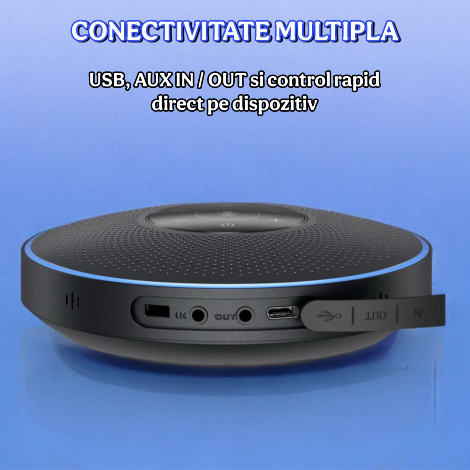 Transforma orice intalnire intr-o experienta audio profesionala cu eMeet M2 – speakerphone de conferinte inteligent si portabil, ideal pentru birou, home office, sali de huddle sau intalniri hibrid. Sunet clar si captare voce 360°Echipat cu un set de 4 microfoane omni-directionale de ultima generatie, eMeet M2 capteaza vocea din toate directiile, pana la 3 metri distanta, astfel incat toti participantii sa fie auziti clar – indiferent unde se afla in incapere.Tehnologie AI de eliminare a zgomotuluiAlgoritmul exclusiv VoiceIA® reduce eficient zgomotul de fundal si ecoul, pentru convorbiri naturale si clare – ideal in medii zgomotoase sau in sedinte importante.Conectivitate versatila Plug & PlayConecteaza rapid difuzorul prin USB-C, Bluetooth 4.2 sau jack audio 3.5mm (AUX) si incepe conferinta instant – fara instalari complicate.Portabil si pregatit pentru intalniri oriundeCu bateria interna de lunga durata si greutatea de doar ~299 g, poti organiza convorbiri profesionale in birou, acasa sau in deplasare. Include husa de transport pentru protectie suplimentara.Potrivit pentru echipe mici si mediiRecomandat pentru intalniri cu pana la 10 persoane, iar daca ai nevoie de acoperire mai mare poti conecta doua unitati in „daisy chain” pentru pana la 16 participanti.Compatibilitate larga cu software si dispozitiveFunctioneaza fara probleme cu Zoom, Microsoft Teams, Skype, Webex si alte platforme populare, pe Windows, macOS si alte sisteme.Ce primesti in pachet:✔ eMeet M2 speakerphone✔ Cablu USB-C (1 m)✔ Cablu audio 3.5 mm AUX✔ USB Dongle A200✔ Husa de transport✔ Manual utilizare✔ Ghid sigurantaBeneficii principale:✔ Conversatii cristaline fara zgomot✔ Instalare rapida „Plug & Play”✔ Compatibil cu majoritatea platformelor video✔ Usor de mutat si configurat in diferite locuri✔ Scalabil pentru echipe medii
